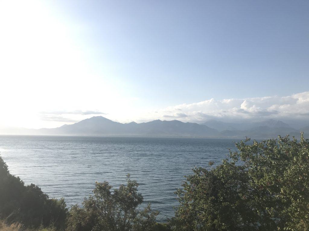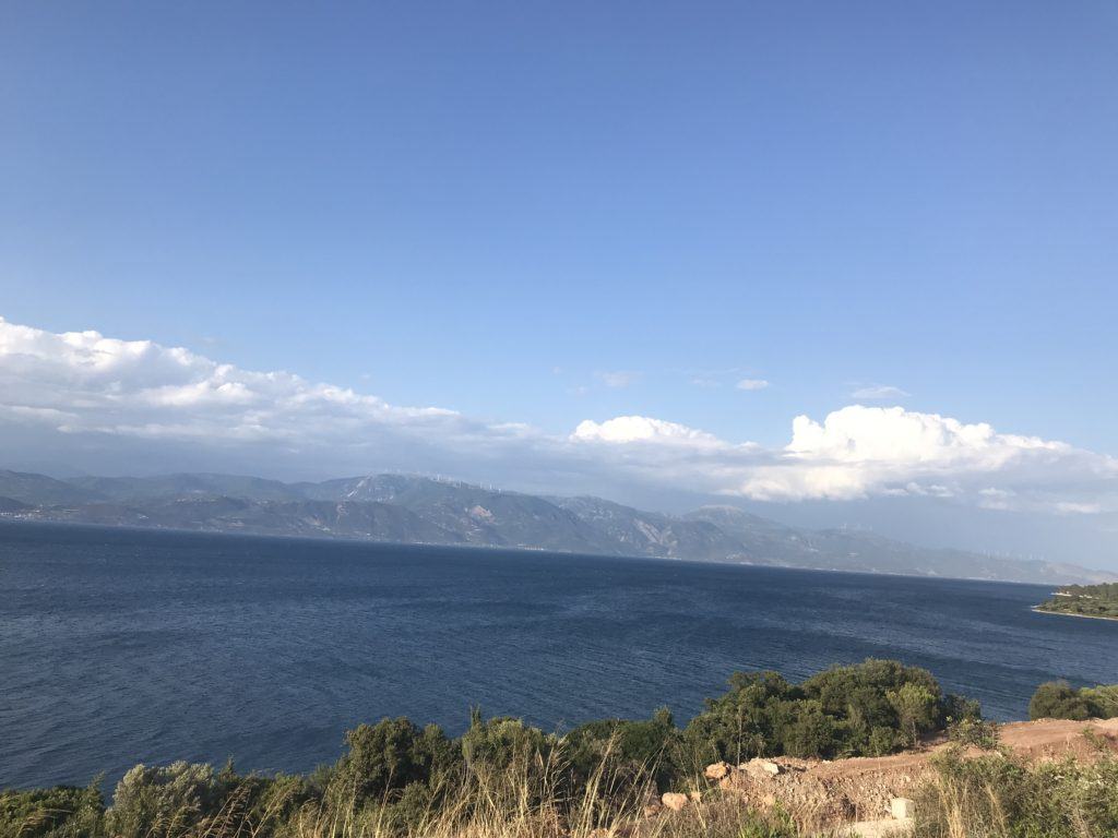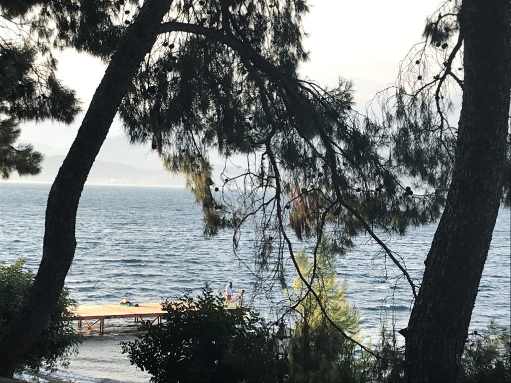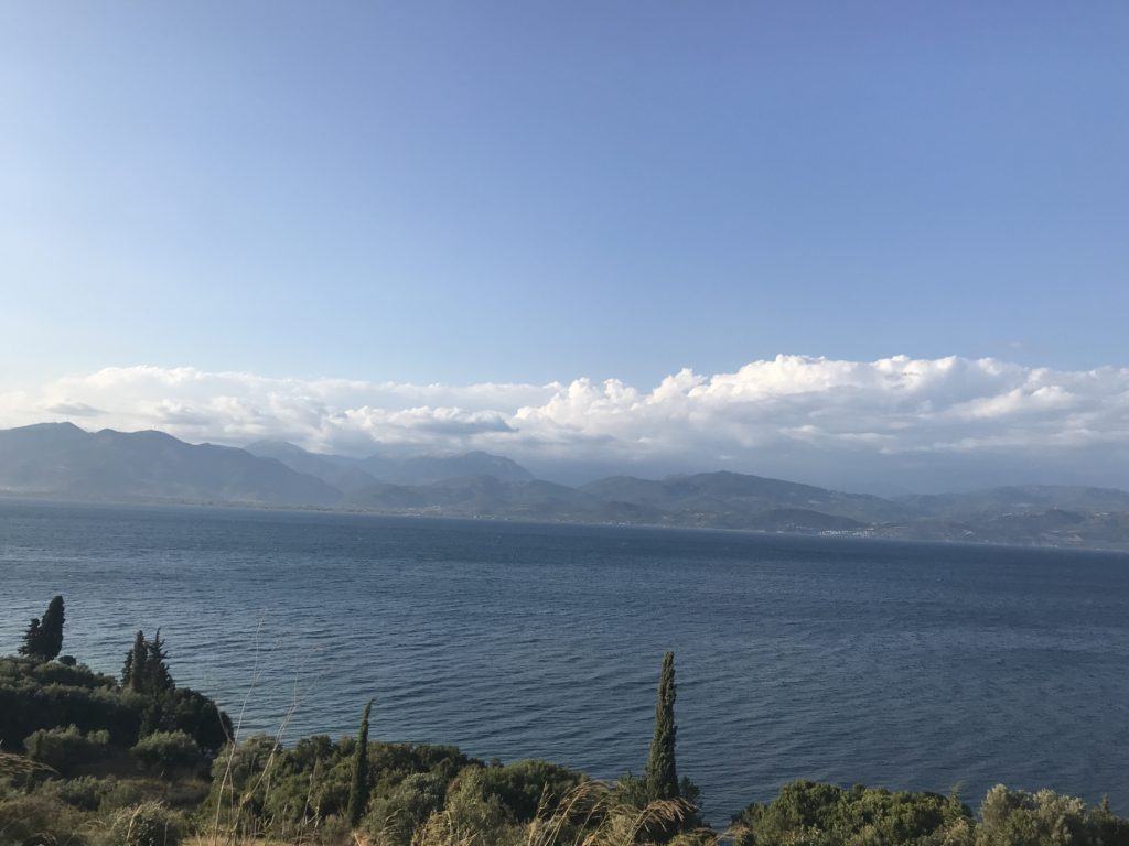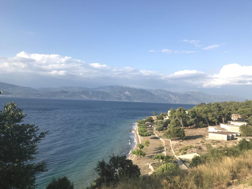 In ostello a Patrasso? Mmm preferisco avere l’intimità della mia tenda, quindi opto oer un campeggio a 28 km dal porto. Faccio bene, il campeggio è molto bello, proprio sul mare, con ristorantino e bar con terrazzino che affaccia sul mare.