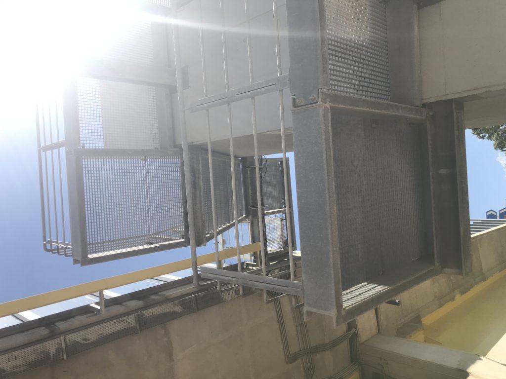 Scatto qualche foto e quando arrivo al fondo trovo una sorpresa: un cancelletto chiuso con lucchetto. A sinistra le auto che sfrecciano con un barriera che mi separa da loro a destra tre piane di scale che mi conducono a livello della strada. Bene !