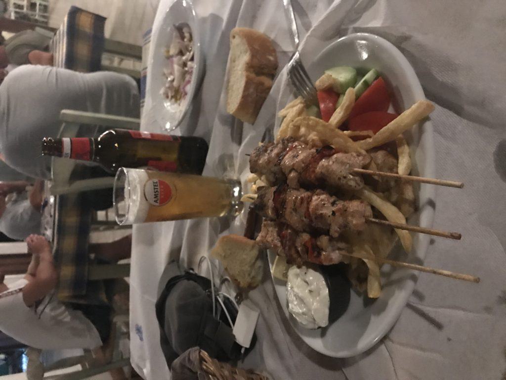 Unavolta piazzato mi concedo una cena abbondante al ristorante, dove vedo un uomo in solitaria che si siede al tavolo vicino. Gli chiedo da dove venga e lui mi risponde: from Italy, di Voghera. Lui è Marco, uomo sulla cinquantina in ferie anche lui in bici diretto ad Atene dove lo raggiungerà la compagna. Finiremo la serata a bere insieme e contarcela un pó.